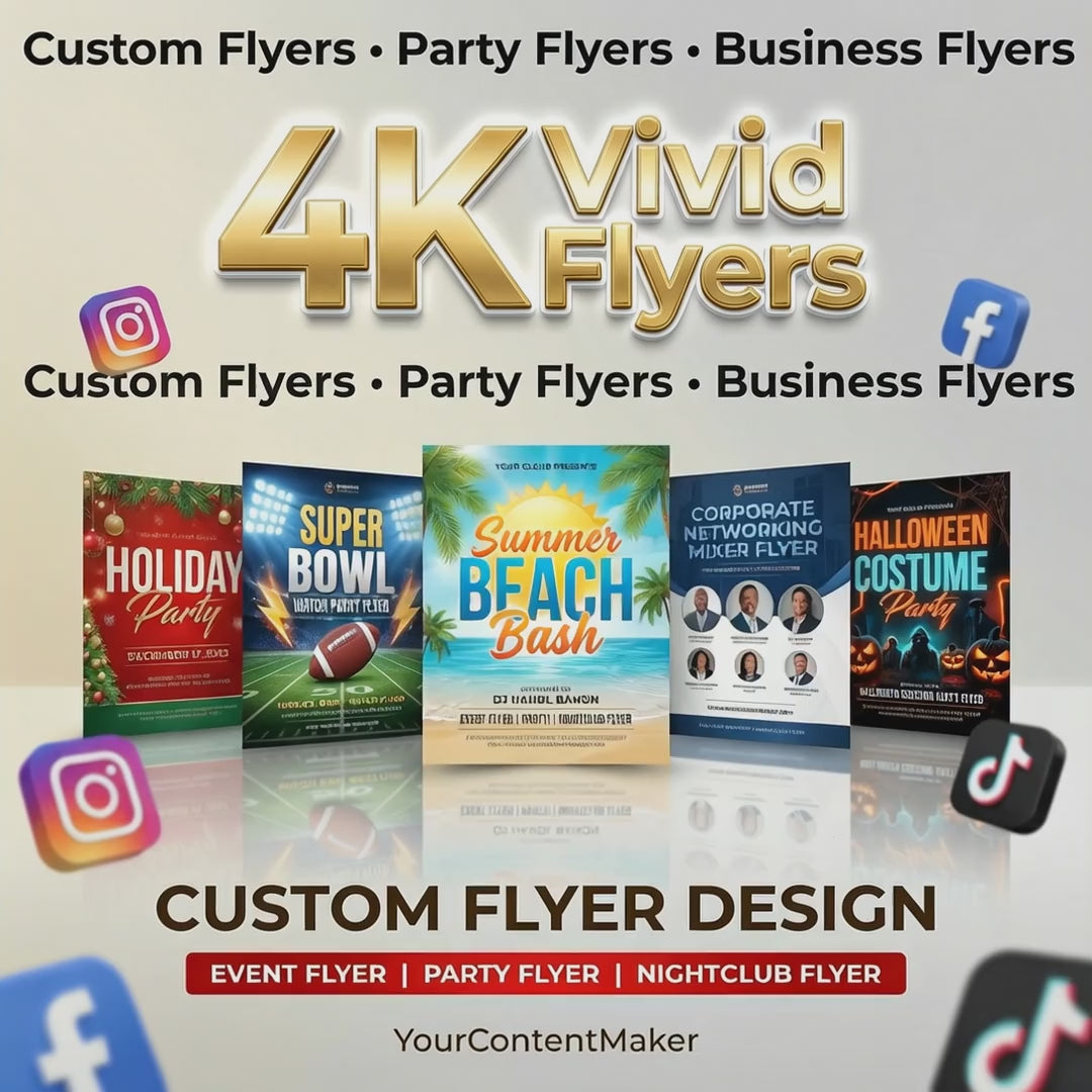 We specialize in creating high-quality, fully customized flyers tailored to your business, music, event, or personal brand.